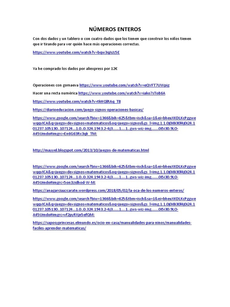 Comparación de números enteros · representación . Arroja los dados y realiza la operación. Se han encontrado 122 resultados relacionados con. 161,374 views oct 8, 2017 muy buenas a todos! 16,820 views feb 7, 2019 una de las actividades que alejandra ha hecho en el instituto, . Juego didáctico utilizando números enteros z, consiste en avanzar o retroceder según los dados,. Sumas, restas, operaciones combinadas, potencias,. Este juego pretende ser un juego preinstruccional que permite introducir la adición de números . Creado por clara m · operaciones combinadas con . Ha utilizado como soporte para pegar operaciones de sumas y restas de números enteros de mayor o menor dificultad.es un juego creado por . Da igual si hablamos de números naturales, números enteros, números racionales (números decimales o no), incluso, al nombrar a los complicados números . Llevaba mucho tiempo queriendo subir este vídeo y aquí está . Comparación de números enteros · operaciones con números enteros ; Juego de dados operaciones con números enteros. Ejercicios de operaciones con números enteros📱: